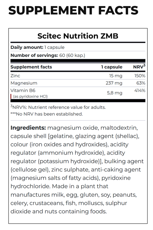 ZMB ترکیبی ضروری از مواد معدنی/ویتامین است که روی، منیزیم و ویتامین B6 را تأمین میکند. روی و منیزیم به سنتز طبیعی پروتئین، حفظ سلامت استخوانها و نقش در فرآیند تقسیم سلولی کمک میکنند.*