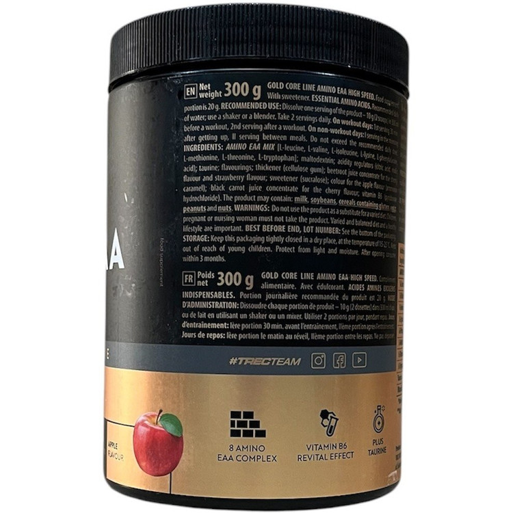 آمینو EAA (اسیدهای آمینه ضروری) گروهی از هشت اسید آمینه ضروری هستند که برای عملکرد صحیح بدن ضروری هستند. این ترکیبات توسط بدن ما سنتز نمیشوند، بنابراین باید از منابع خارجی از طریق یک رژیم غذایی متعادل و مکملها دریافت شوند. اسیدهای آمینه ضروری، همراه با اسیدهای آمینه درونزا، با عمل به عنوان یکی از اجزای این پروتئینها، از سنتز پروتئینهای عضلات و بدن پشتیبانی میکنند. آمینو EAA حاوی تمام اسیدهای آمینه ضروری با نسبت بهینه است و ال-سیترولین و تورین نیز به آن اضافه شده است. آمینو EAA گلد کور همچنین حاوی عصارههای گیاهی گوارانا، چای سبز و قهوه سبز و همچنین کوآنزیم ویتامین B6 و ویتامین B12 (5-دئوکسیآدنوزیل کوبالامین) است. ویتامینهای B6 و B12 به بدن کمک میکنند تا متابولیسم انرژی مناسب را حفظ کرده و خستگی و کوفتگی را کاهش دهد.
