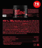 ۸۷.۵٪ کراتین مونوهیدرات، تنظیم کننده اسیدیته (اسید سیتریک)، طعم دهنده، شیرین کننده (سوکرالوز)، کنسانتره هویج سیاه (برای رنگ)، ویتامین B6 (پیریدوکسین هیدروکلراید – ۰.۰۱٪).