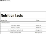ترکیبات: ال-کارنیتین تارترات (۸۳.۳٪)؛ پوسته کپسول (ژلاتین)B / (عامل لعابدهنده - هیدروکسی پروپیل متیل سلولز)C / (ژلاتین؛ رنگ - دی اکسید تیتانیوم)D؛ عامل ضد کلوخه شدن - نمکهای منیزیم اسیدهای چرب. B،C،D. این محصول ممکن است حاوی: شیر، سویا، غلات حاوی گلوتن، تخم مرغ، بادام زمینی و آجیل درختی باشد.
