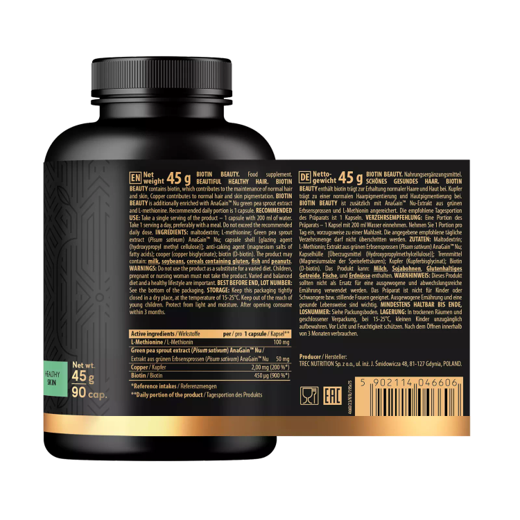 مکمل غذایی بیوتین بیوتی Trec Nutrition TBL (90 کپسول) یک مکمل غذایی حاوی بیوتین است که با نام ویتامین B7 نیز شناخته میشود و برای سلامت پوست، مو و ناخنها مهم است. در اینجا مروری بر ویژگیهای کلیدی آن داریم: