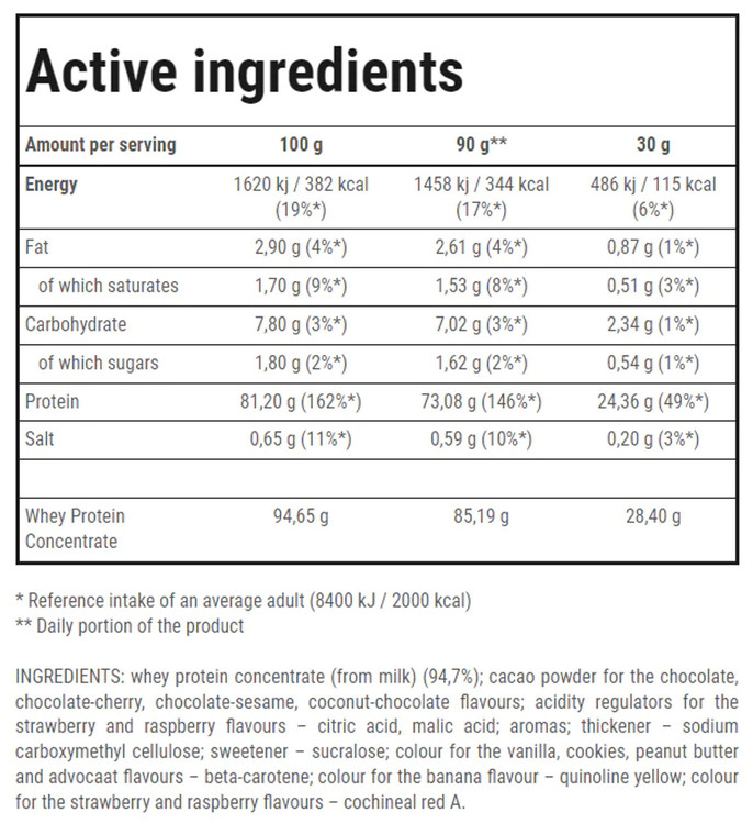 - کنسانتره پروتئین وی: ۹۴.۶۵ گرم