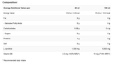 | انرژی | ۲۳.۲ کیلوکالری / ۹۶.۹ کیلوژول | ۲.۳ کیلوکالری / ۹.۷ کیلوژول |