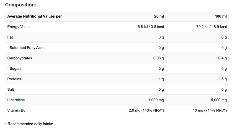 ال-کارنیتین مایع ۵۰۰۰ حاوی هیچ قند یا چربی نیست و کالری بسیار کمی دارد.
