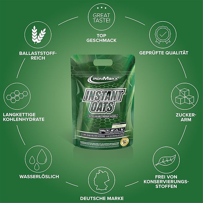 با ۶۸ گرم کربوهیدرات پیچیده، ۱۴ گرم پروتئین و تنها ۷ گرم چربی سالم در هر وعده، جو دوسر فوری برای یک رژیم غذایی پرکربوهیدرات و کم چرب عالی است. با ۴۰۰ کیلوکالری و تنها ۰.۵۹ گرم شکر در هر ۱۰۰ گرم، پودر دانه جو دوسر کامل طبیعی بخش رایجی از برنامههای غذایی است.
