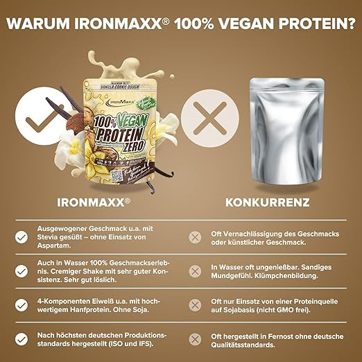 پروتئین زیرو ۱۰۰٪ گیاهی از IronMaxx مکمل غذایی بینظیری را برای هر کسی که میخواهد بدون پروتئین حیوانی زندگی کند، و همچنین برای هر ورزشکار دیگری ارائه میدهد. ۱۰۰٪ گیاهی با ۱۰۰٪ طعم.