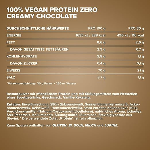 - پودر پروتئین وگان: پروتئین وگان زیرو از مواد حیوانی ساخته نشده، بلکه از مواد گیاهی ساخته شده است - با این وجود، این شیک نه تنها برای وگانها و گیاهخواران، بلکه برای همه افراد دیگر نیز مناسب است - ما عمداً از استفاده از سویا خودداری میکنیم.