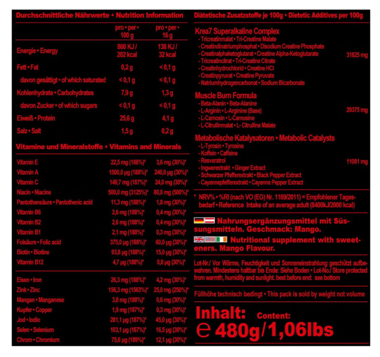 Zorn® ساخت IronMaxx® جدیدترین نسل از تقویتکنندههای قبل از تمرین را ارائه میدهد. ماتریس بسیار مؤثر فرمول منحصر به فرد کراتین، تیروزین، L-آرژنین HCL، سیترولین مالات، ۱۰۰٪ BCAAهای آزاد، آنتیاکسیدانها، ویتامینها و مواد معدنی با ۱۶۰ میلیگرم کافئین خالص تکمیل میشود. این ترکیب هوشمندانه و قوی از مواد تشکیلدهنده، اثربخشی فوقالعادهای را در دوز بهینه تضمین میکند و Zorn® را به یکی از مؤثرترین و قویترین تقویتکنندههای تمرینی موجود در بازار تبدیل میکند.