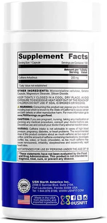 کافئین USN - تقویت انرژی، هوشیاری و تمرکز - 200 میلیگرم در هر وعده، 100 کپسول بلع آسان ویژگیهای کلیدی: کافئین USN راه حل است - مکمل کافئین ما حاوی 200 میلیگرم در هر کپسول است - به اندازهای که به هوشیار نگه داشتن ذهن شما بدون افت انرژی مرتبط با سایر محصولات کمک کند. تقویت انرژی - شما میدانید که خستگی، فرسودگی و عدم توانایی در انجام وظیفه چیست. اما باید روز را سپری کنید، بنابراین به سراغ یک فنجان قهوه یا نوشیدنی انرژیزا میروید. هوشیاری و تمرکز - کافئین موجود در این محصول میتواند به بهبود تمرکز و توجه شما کمک کند و آن را برای مطالعه یا کار ایدهآل میکند. آرامش - اگر احساس استرس یا اضطراب دارید، این قرصها راهی عالی برای آرامش ذهن و بدن شما هستند. آنها به کاهش احساس استرس و بهبود خلق و خو کمک میکنند. کپسولهای بلع آسان - نیازی به آب یا چیز دیگری نیست! این کپسولها به راحتی بلعیده میشوند و به شما امکان میدهند کافئین مورد نیاز خود را به سرعت و به راحتی دریافت کنید