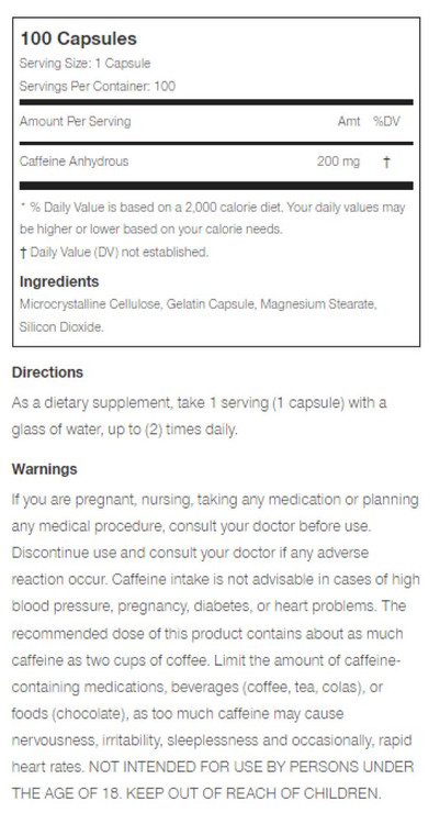 ۲۰۰ میلیگرم کافئین بدون آب در هر وعده