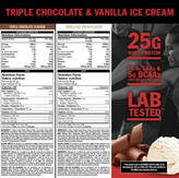 ترکیبی از ۴ پروتئین شیر (کنسانتره پروتئین آب پنیر (شیر)، کنسانتره پروتئین فسفولیپید آب پنیر (شیر)، ایزوله پروتئین آب پنیر، هیدرولیزات پروتئین آب پنیر)، پودر تری گلیسیرید با زنجیره متوسط (مالتودکسترین، روغن نارگیل تکه تکه شده)، کاکائو، غلیظ کننده ها (صمغ گوار)، طعم دهنده ها، امولسیفایر (لسیتین آفتابگردان، لسیتین سویا)، نمک، رنگ (کارامل ساده (طعم براونی شکلاتی فاج))، شیرین کننده ها (سوکرالوز، آسه سولفام پتاسیم، استویول گلیکوزیدها)، عامل ضد کلوخه شدن (دی اکسید سیلیکون)، قهوه فوری (طعم براونی شکلاتی فاج)، تقویت کننده طعم (سیترات پتاسیم)، دارچین، آنزیم ها (لاکتاز، پروتئاز).