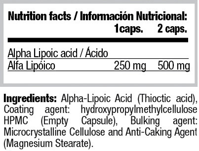 آلفا لیپوئیک اسید، عامل پوششدهنده (هیدروکسی پروپیل متیل سلولز)، هیدروکسی پروپیل متیل سلولز (کپسول خالی)، عامل حجمدهنده (سلولز میکروکریستالی)، عامل ضد کلوخه شدن (منیزیم استئارات)