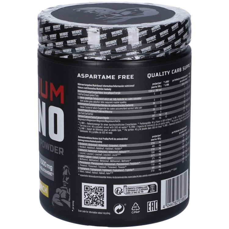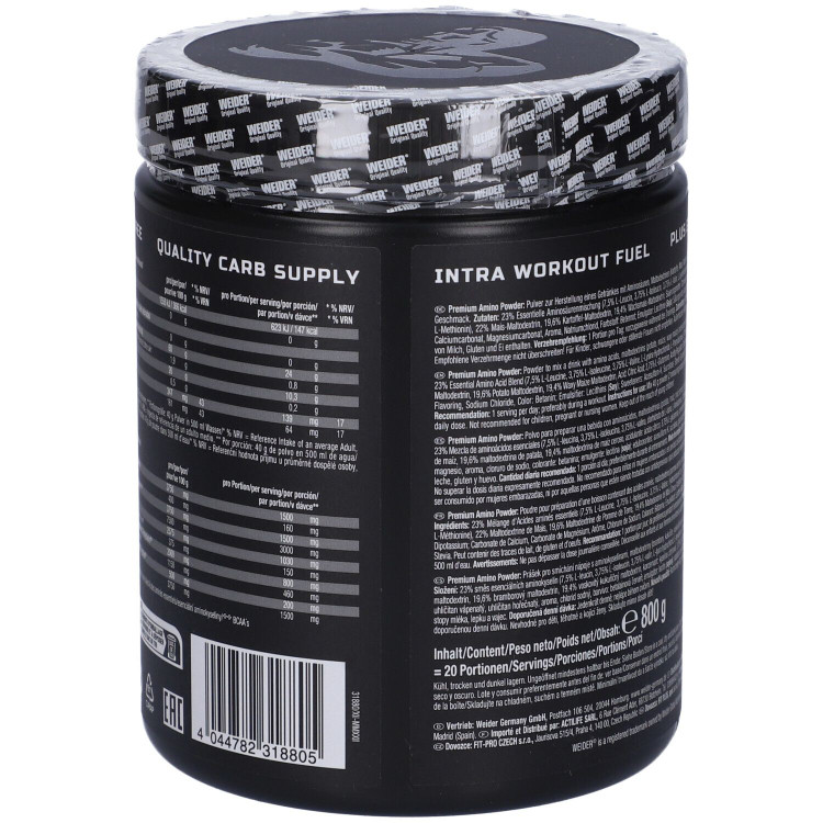 پودر آمینو پریمیوم ویدر (WEIDER) به طور ویژه برای مصرف در طول تمرینات شدید طراحی شده است. ترکیبات این محصول با دقت انتخاب شدهاند تا مواد مغذی مورد نیاز بدن شما را در مواقع ضروری فراهم کنند. هر وعده آمینو پریمیوم حاوی ۸۸۰۰ میلیگرم اسید آمینه ضروری (EAAs)، ۶۰۰۰ میلیگرم BCAA، ۱۵۰۰ میلیگرم L-گلوتامین، ۲۴ گرم کربوهیدرات با کیفیت بالا و الکترولیتهای ضروری است. همراهی بینظیر برای تمرینات جامع شما!