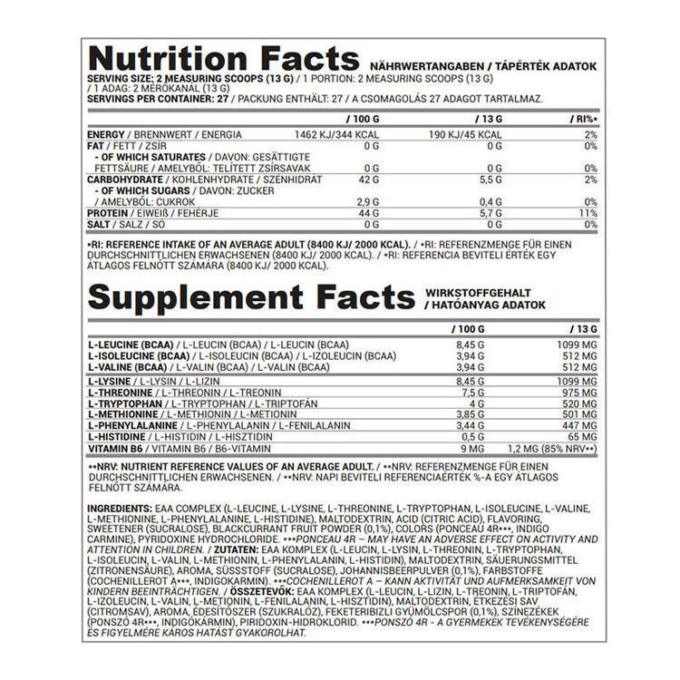 اسیدهای آمینه ضروری ( EAAs ) اسیدهای آمینهای هستند که بدن ما قادر به تولید آنها نیست، یا فقط میتواند آنها را در مقادیر کم تولید کند، اما با این وجود ضروری هستند، یعنی برای عملکرد طبیعی بدن ما ضروری هستند. شایان ذکر است که تمام اسیدهای آمینه ضروری به طور طبیعی فقط در پروتئینهای کامل یافت میشوند که منحصراً منابع حیوانی و سویا هستند، بنابراین استفاده از یک ترکیب EAA میتواند به ویژه در کنار رژیم غذایی گیاهخواری مفید باشد.