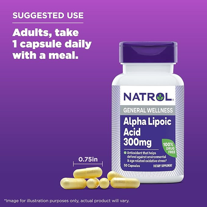 - مکمل سلامت عمومی برای بزرگسالان: ALA در هر وعده 300 میلیگرم آلفا لیپوئیک اسید، یک کوآنزیم در متابولیسم گلوکز، فراهم میکند و از تولید آنتیاکسیدان گلوتاتیون که از کبد و اعصاب محافظت میکند، پشتیبانی میکند (1).