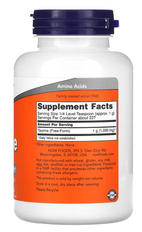 - بدون افزودنیهای ناخواسته: پودر تورین از Now Foods بدون گلوتن است و بدون مهندسی ژنتیک تولید میشود.