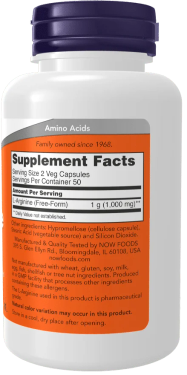 NOW Supplements, L-Arginine 500 mg 100 Veg Capsules