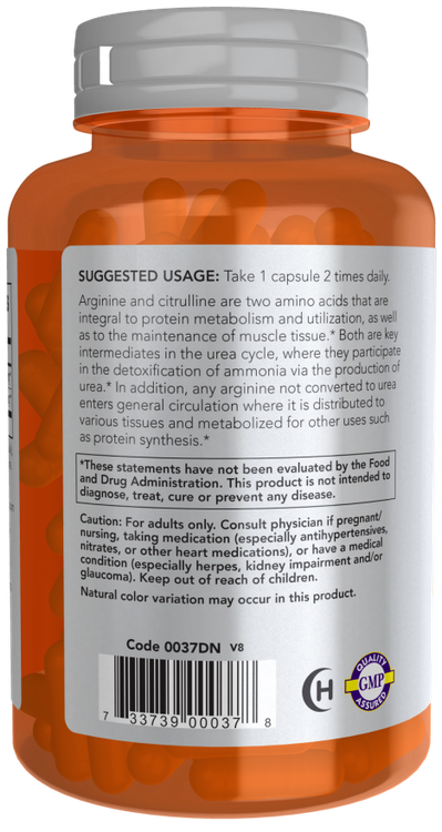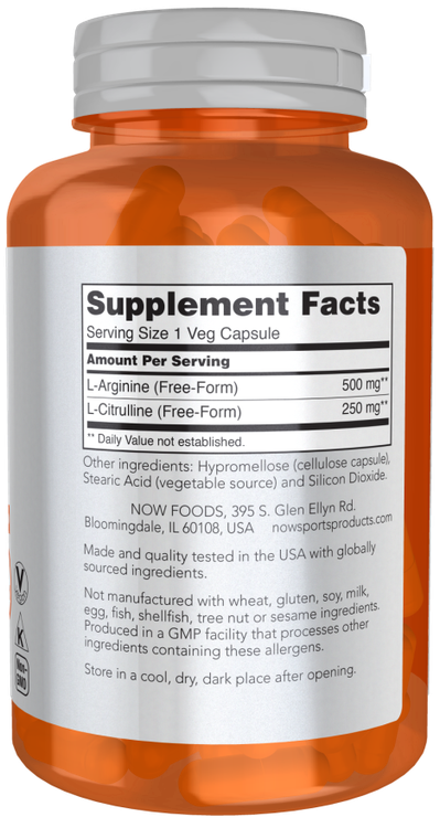 NOW Sports Nutrition, Arginine & Citrulline 500 mg/ 250 mg, Amino Acids, 240 Veg Capsules