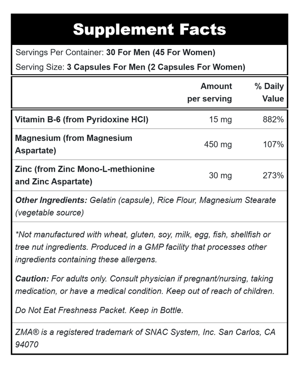 ZMA® ترکیبی از روی، منیزیم و ویتامین B-6 است که برای به حداکثر رساندن جذب و بهبود ریکاوری پس از ورزش طراحی شده است. روی نقش اساسی در تنظیم رشد سلولی و ترمیم بافت و همچنین حفظ سلامت سیستم ایمنی بدن دارد. منیزیم برای حفظ تعادل الکترولیت، تولید انرژی و عملکرد طبیعی عصبی-عضلانی ضروری است. از آنجا که فعالیت بدنی میتواند نیاز به این دو ماده معدنی را افزایش دهد، ZMA® مکمل ایدهآلی برای کمک به بازیابی آنها است