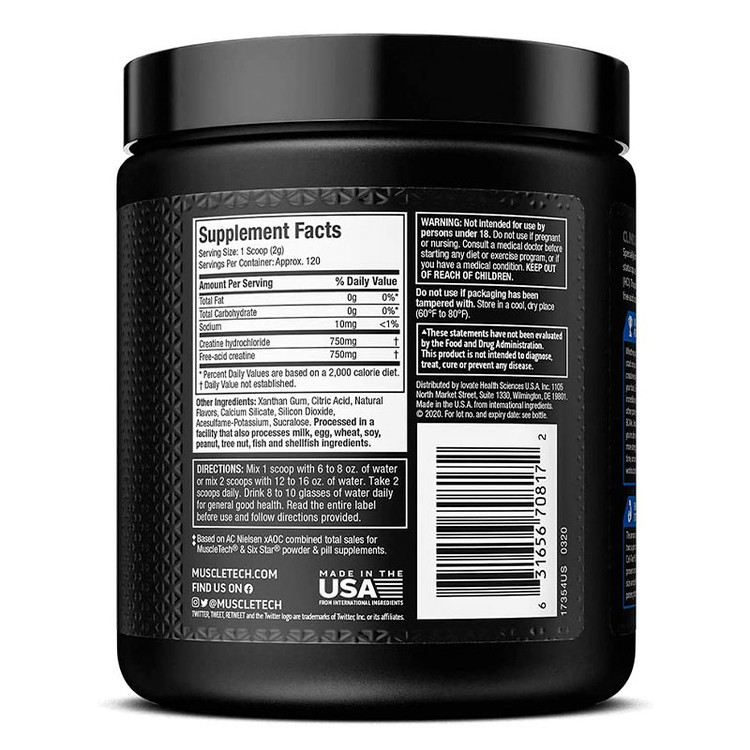 - کراتین با قدرت بیشتری: MuscleTech Cell-Tech Creactor پشتوانه علمی است و میکرودوزهای قوی کراتین و کراتین هیدروکلراید (HCl) را برای تجربه بهتر میدهد. بدون طعم. ۱۲۰ پیمانه در هر ظرف.