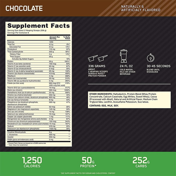 Serious Mass™ با ۱۲۵۰ کالری در هر وعده، به کاربران کمک میکند تا به سرعت به اهداف افزایش وزن خود برسند و این محصول را برای ورزشکاران و بدنسازانی که به دنبال افزایش حجم موثر هستند، ایدهآل میکند.