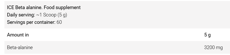 بتا آلانین ICE. مکمل غذایی. با شیرینکنندهها. محصولی به شکل پودر با طعم انبه-لیمو یخی ، حاوی بتا آلانین، که برای بزرگسالان فعال از نظر جسمی، به ویژه کسانی که در جلسات تمرین قدرتی با شدت و حجم بالا شرکت میکنند، توصیه میشود.