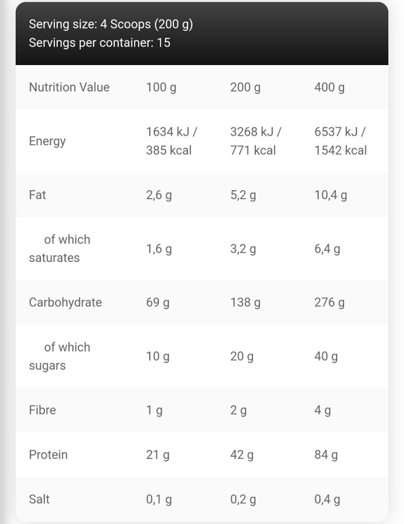 این محصول پروتئین با کیفیت بالا را برای ریکاوری مناسب فراهم میکند، اما نه تنها این، بلکه کربوهیدراتها را نیز فراهم میکند. گلیکوژن عضلات در طول فعالیت بدنی تخلیه میشود. برای بازسازی این ذخایر انرژی، باید مقدار بهینهای از کربوهیدراتها تأمین شود .