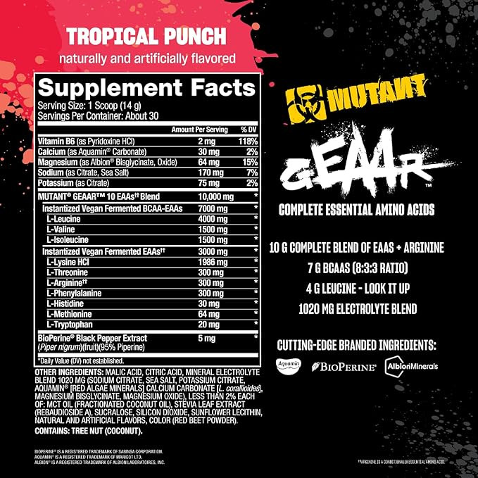 تحقیقات بالینی نشان داده است که ۹ اسید آمینه ضروری (EAA) به همراه آرژنین برای عضله سازی و افزایش ریکاوری مورد نیاز هستند. تعداد بسیار کمی از مکملهای EAA حاوی آرژنین هستند که یک اسید آمینه ضروری مشروط (CEAA) مورد نیاز در طول تمرین بیش از حد و رژیم غذایی طولانی مدت است، اما همچنین انسولین و اکسید نیتریک را افزایش میدهد و به انتقال اسیدهای آمینه به عضله کمک میکند. GEAAR با ۹.۴ گرم EAA به همراه آرژنین، ۷ گرم BCAA و ۴ گرم لوسین فرموله شده است. GEAAR همچنین با الکترولیتهای طبیعی ترکیب شده است تا عملکرد را به حداکثر برساند و بدون طعمدهنده، رنگ یا رنگدانه مصنوعی ساخته شده است. با بیش از ۱۰ گرم ماده فعال در یک پیمانه، GEAAR کاملترین مکمل EAA موجود در بازار است.