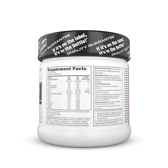 - نسبت بهینه BCAA: با تعادل کاملی از اسیدهای آمینه شاخهدار (BCAA)، مکمل EAA لابرادا نسبت ایدهآلی را برای سوخترسانی به عضلات، افزایش استقامت و شروع سریع ریکاوری فراهم میکند.