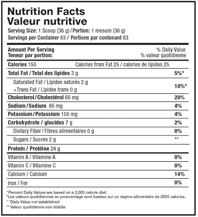 کمپلکس پروتئین ماموت (کنسانتره پروتئین آب پنیر، پروتئین ایزوله شیر، پروتئین ایزوله آب پنیر، پروتئین آب پنیر هیدرولیز شده، کازئین میسلی، کازئینات کلسیم)، پودر کاکائو، خامه نارگیل (روغن نارگیل، شربت ذرت جامد، کازئینات سدیم (یک مشتق شیر)، مونو و دی گلیسیرید، سدیم سیلیکو آلومینات)، مالتودکسترین، پلی دکستروز، مخلوط صمغ (سلولز، زانتان، گوار)، طعم دهنده های طبیعی و مصنوعی، نمک، سوکرالوز (50 میلی گرم در 36 گرم)، آسه سولفام پتاسیم (50 میلی گرم در 36 گرم).