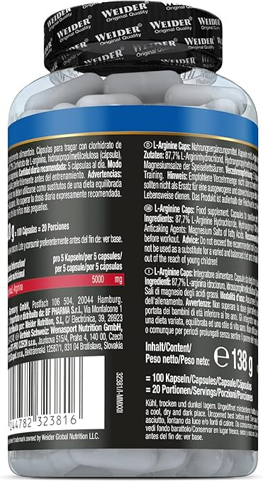 کپسولهای ال-آرژنین ویدر ما در هر وعده ۵۰۰۰ میلیگرم از این اسید آمینه مهم را با کیفیت عالی ارائه میدهند.