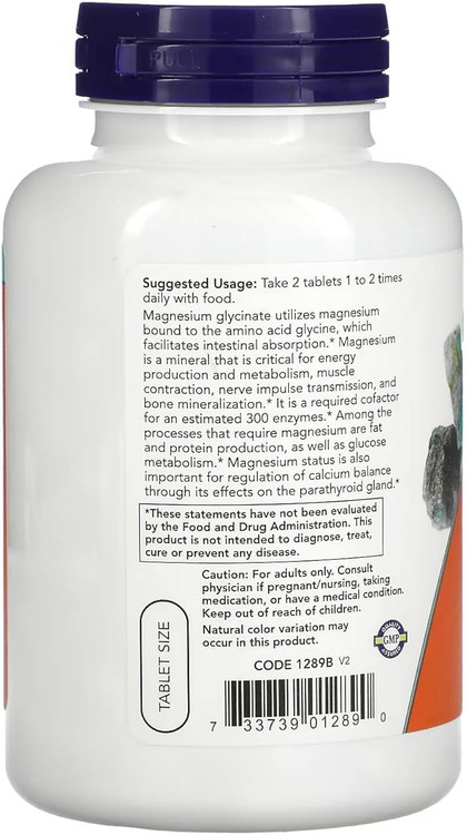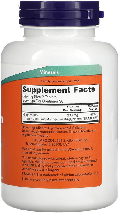 NOW Foods Supplements, Magnesium Glycinate 100 mg, 180 Tablets