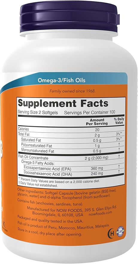 - پشتیبانی قلبی عروقی*: برای کمک به سلامت قلب، روزانه ۲ کپسول نرم امگا ۳ ۱۰۰۰ میلیگرمی NOW مصرف کنید*