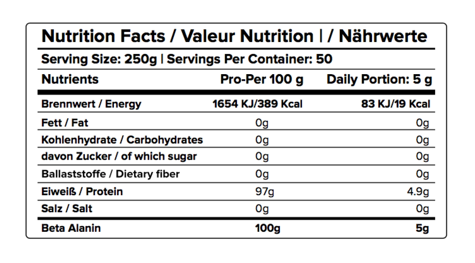 حاوی ۱۰۰٪ بتا آلانین خالص بدون افزودنی های غیرضروری