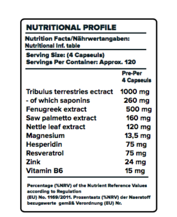حاوی ۱۴۰۰ میلی گرم تریبولوس ترستریس با ۵۶۰ میلی گرم ساپونین