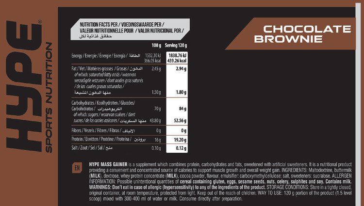 ریکاوری کامل عضلات و رشد کیفی عضلات نیاز به کالری زیادی دارد که عمدتاً از یک کمپلکس کربوهیدرات تأمین میشود. هایپ مس گینر حاوی نسبتهای مناسبی از پروتئین و کربوهیدرات (1:4) برای پر کردن گلیکوژن عضلات است که منجر به ریکاوری سریعتر و رشد عضلات میشود.