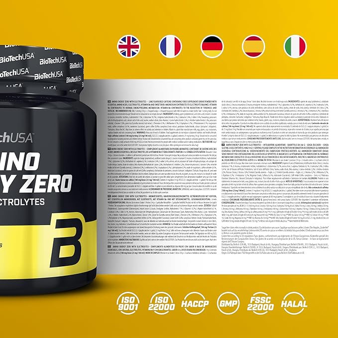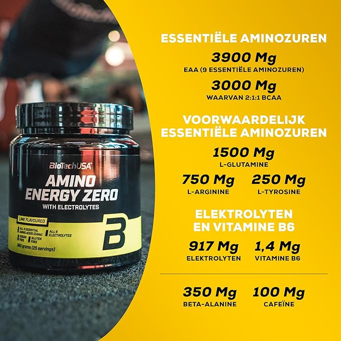 آمینو انرژی زیرو با الکترولیت (۳۶۰ گرم) از شرکت بایوتک آمریکا، یک پودر قبل از تمرین است.