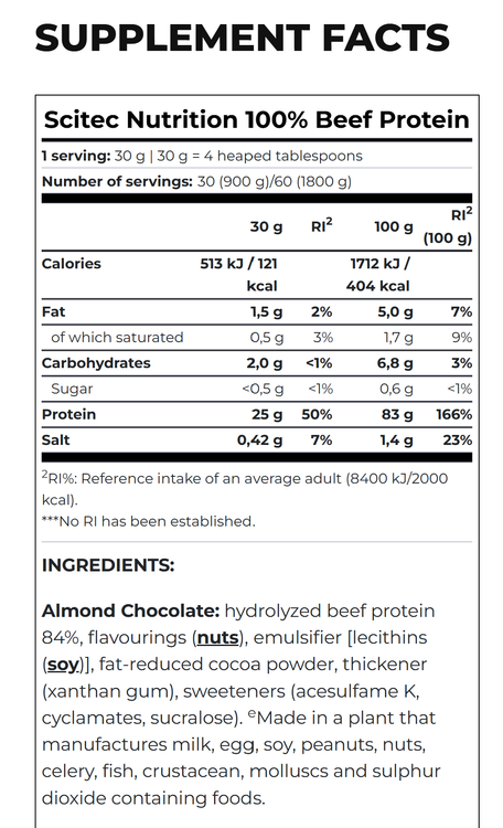 پروتئین ۱۰۰٪ گوشت گاو، فرمولی بر پایه پروتئین گوشت گاو است که چربی d ، قند b ، لاکتوز a و گلوتن c کمی دارد . این محصول حاوی پروتئین کامل گوشت گاو هیدرولیز شده یا "از پیش هضم شده" است. این پروتئین به حفظ و رشد توده عضلانی و ساختار طبیعی استخوان کمک میکند. پروتئینهای کامل حاوی تمام اسیدهای آمینه ضروری هستند که بدن نمیتواند آنها را سنتز کند و بنابراین باید با غذا مکمل شوند. در وهله اول، یک رژیم غذایی متعادل و متنوع بهترین راه برای تأمین پروتئین است و محصول ما میتواند مکمل مناسبی برای این امر باشد.