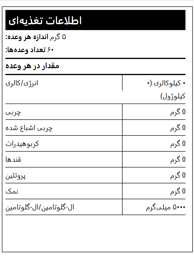۱ وعده (۱ پیمانه، ۵ گرم) را با یک لیوان (۲۰۰ میلیلیتر) آب مخلوط کرده و دو بار در روز، بعد از تمرین و قبل از خواب مصرف کنید.