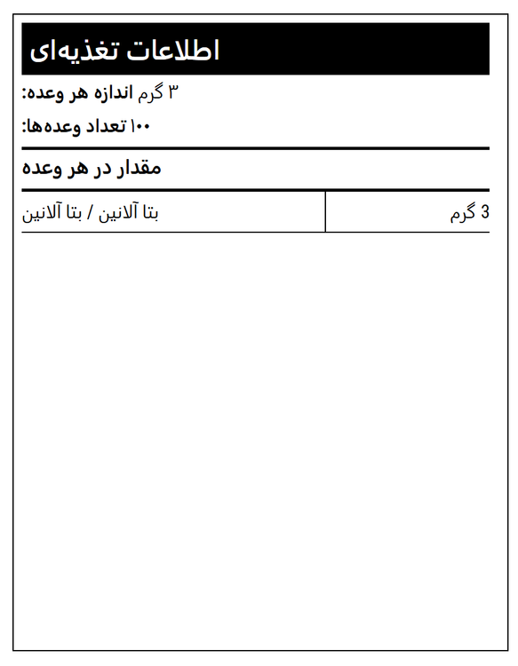 حاوی ۱۰۰٪ بتا آلانین. بدون مواد افزودنی.
