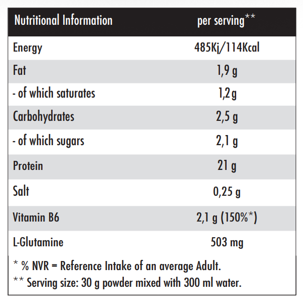 30 گرم پودر (1 پیمانه) را در 300 میلی لیتر شیر کم چرب (1.5٪ چربی) و آب مخلوط کنید.