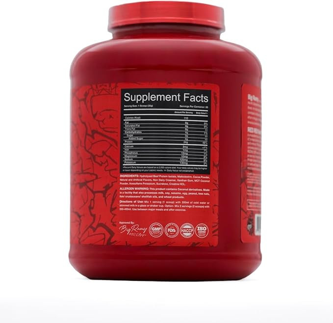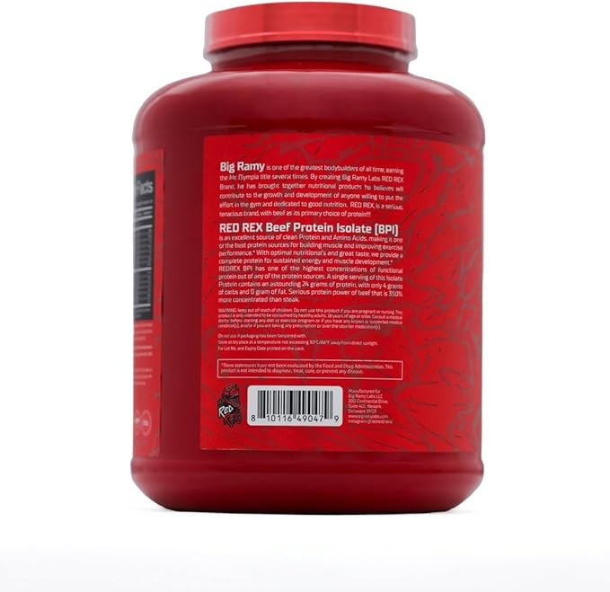 پروتئین ایزوله بیف بیگ رامی یک منبع عالی از پروتئین تمیز و اسیدهای آمینه است که آن را به یکی از بهترین منابع پروتئین برای عضلهسازی و بهبود عملکرد ورزشی تبدیل میکند RED REX بیگ رامی با مواد مغذی بهینه و طعم عالی، پروتئین کاملی را برای انرژی پایدار و رشد عضلات فراهم میکند و RED REX BPI یکی از بالاترین غلظت پروتئین عملکردی را در بین هر یک از منابع پروتئینی دارد. یک وعده از این پروتئین ایزوله بیف حاوی ۲۴ گرم پروتئین است که تنها ۳ گرم کربوهیدرات و چربی صفر دارد. قدرت وی پروتئین ایزوله beef ۳۵۰% غلیظتر از استیک میباشد. پروتئین بیف ایزوله بیگ رامی فاقد لاکتوز است. خرید پروتئین بیف یک جایگزین عالی برای پروتئین آب پنیر یا شیر برای افرادی که به محصولات لبنی حساس هستند.