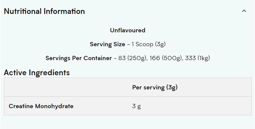 بدون طعم: کراتین مونوهیدرات (۱۰۰٪).