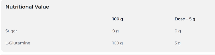 ال-گلوتامین خالص به شکل فوری. ال-گلوتامین یکی از رایجترین اسیدهای آمینه موجود در عضلات اسکلتی است. مصرف پروتئین با کیفیت با طیف مطلوب اسید آمینه به رشد عضلات، به ویژه پس از فعالیت بدنی شدید، کمک میکند.