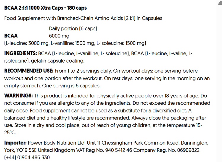 BCAA 2:1:1 1000 Xtra Caps آل نوتریشن، پایه هر مکملی است. ترکیب لوسین، ایزولوسین و وانیلین با نسبت 2:1:1، بازسازی مؤثر پس از تمرین، کاهش کاتابولیسم در طول تمرین و تشکیل توده عضلانی خالص را تضمین میکند. BCAA 2:1:1 باید در دوره کاهش وزن و همچنین در دوره افزایش توده بدنی استفاده شود. نسبت اسیدهای آمینه 2:1:1 برای بدن ما بهینه است و بیشترین استفاده از پتانسیل کاتابولیک و همچنین آنابولیک اسیدهای آمینه شاخهدار موجود در مکمل را تضمین میکند.