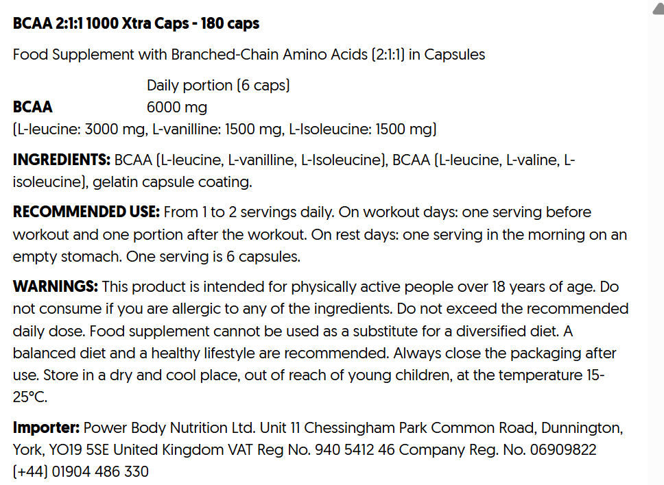 BCAA 2:1:1 1000 Xtra Caps آل نوتریشن، پایه هر مکملی است. ترکیب لوسین، ایزولوسین و وانیلین با نسبت 2:1:1، بازسازی مؤثر پس از تمرین، کاهش کاتابولیسم در طول تمرین و تشکیل توده عضلانی خالص را تضمین میکند. BCAA 2:1:1 باید در دوره کاهش وزن و همچنین در دوره افزایش توده بدنی استفاده شود. نسبت اسیدهای آمینه 2:1:1 برای بدن ما بهینه است و بیشترین استفاده از پتانسیل کاتابولیک و همچنین آنابولیک اسیدهای آمینه شاخهدار موجود در مکمل را تضمین میکند.