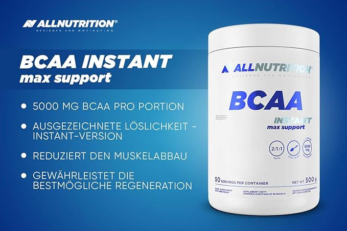 مکمل BCAA MAX SUPPORT آل نوتریشن ، ترکیبی از آمینو اسیدهای شاخهدار (BCAA) با نسبت ۲:۱:۱ (ال-لوسین: ال-والین: ال-ایزولوسین) است که برای پشتیبانی از بدن در حین و بعد از ورزش طراحی شده است. BCAA MAX SUPPORT با ال-گلوتامین و تائورین برای حداکثر پشتیبانی از تمرین، تقویت شده است.