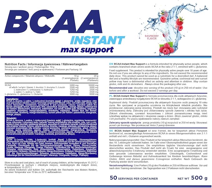 گاهی اوقات محصولات BCAA حاوی دوزهای بسیار بالایی از مواد رنگی برای بهبود ظاهر بصری محصول هستند. BCAA MAX SUPPORT 100٪ خالص و خوشمزه است و هیچ افزودنی مصنوعی برای ایجاد رنگی که هیچ ارتباطی با خود محصول ندارد، به آن اضافه نشده است. یک باقیمانده سفید ظریف روی سطح BCAA MAX SUPPORT باقی میماند که نشان دهنده وجود واقعی لوسین است.