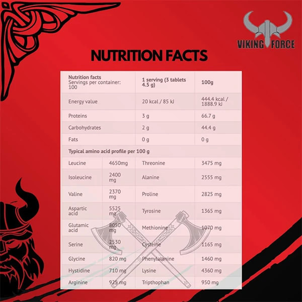 وایکینگ آمینو وی طیف کاملی از اسیدهای آمینه ضروری و غیرضروری را به شکل قرصهای جویدنی خوشمزه ارائه میدهد. وایکینگ آمینو وی از مخلوطی از پروتئین آب پنیر و پپتیدهای آب پنیر مشتق شده و با اسیدهای آمینه شاخهدار اضافی غنی شده است تا 3 گرم پروتئین در هر وعده به شما بدهد.