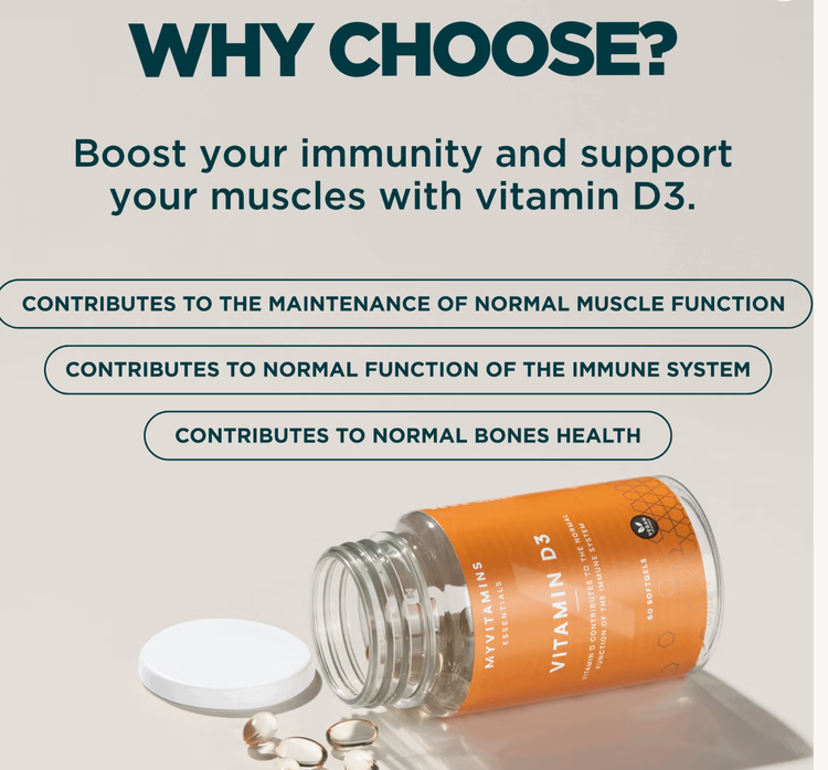 ویتامین D3 یک ویتامین D محلول در چربی به نام کوله کلسیفرول است که برای حفظ سلامت استخوانها، ۳ عضله، ۱ پشتیبانی از سیستم ایمنی، ۲ و کمک به بدن در جذب کلسیم ۵ - که به عملکرد طبیعی عضلات کمک میکند - ضروری است. ۱